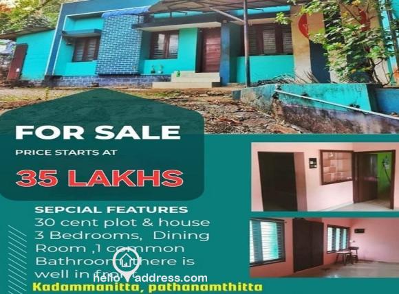 Residential House fotr sale in Kadammanitta Pathanamthitta. 30 Cent 1000sqft 3bhk house , Road access,Well Water availability...