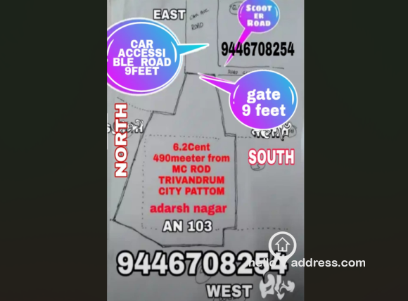 HOUSE PLOT AT PATTOM ADARSH NAGAR (AN103) 6.25 CENT, car accessible road to plot. 3km from medical college 1km from cosmo...